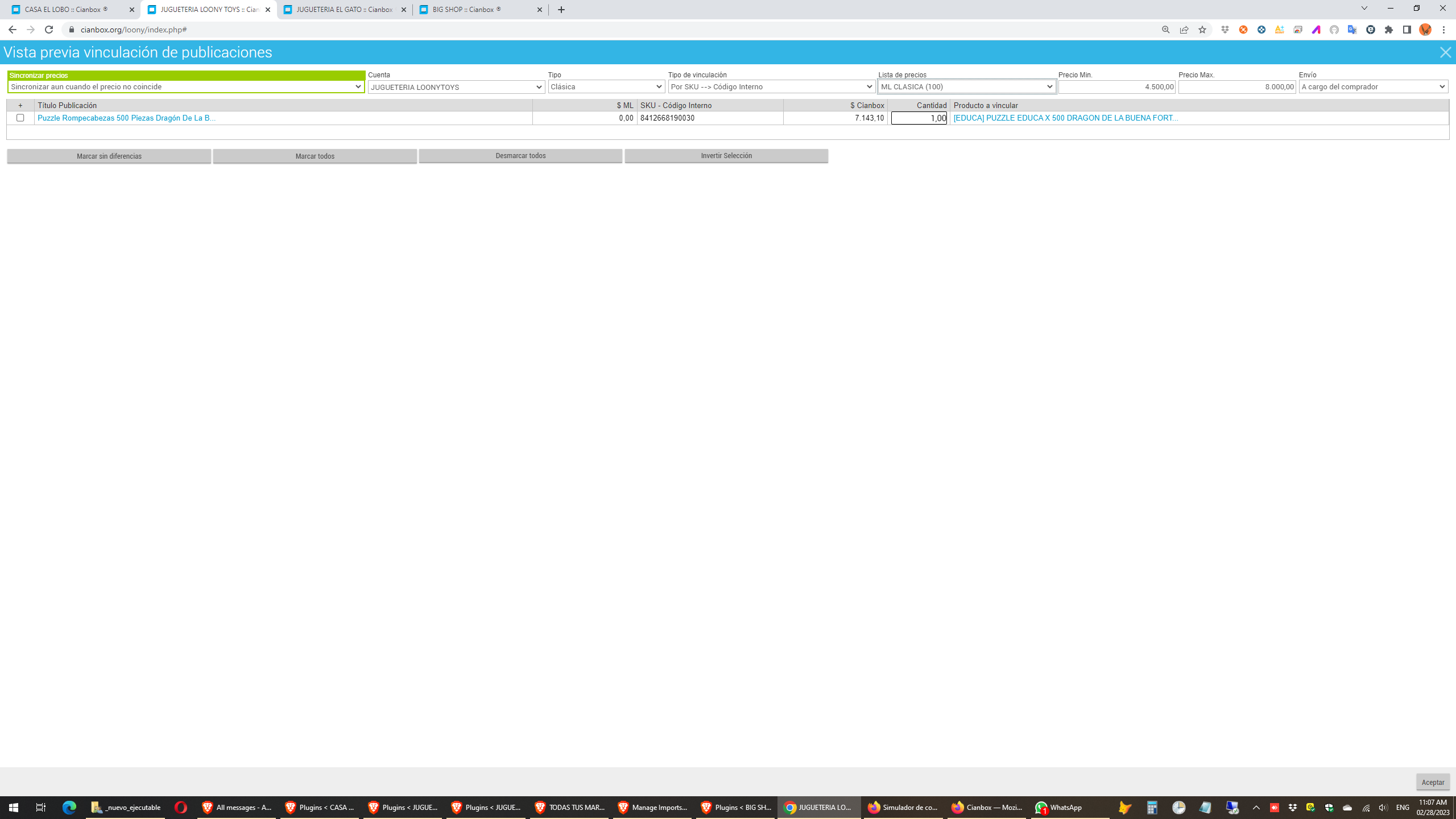 Hola como estas. Como sabras mercadolibre, por un tema de inflacion , cada unos pocos meses cambia el monto minimo para los articulos que no incluyen mercado envio gratis. Entonces, me gustaria sugerir que al vinculador masivo de publicaciones NO Vinculadas, se le pueda agregar una funcion que sea la de Actualizar la vinculacion con una lista de precio determinada, para que todos los productos que antes no tenian mercado envio gratis y ahora si lo tienen, se pueda cambiar la lista de precio en forma masiva y no tener que hacerlo unopor uno, ya que es muy engorroso porque en nuestro caso tenemos mas de 4000 publicaciones activas, lo que cada cambio que hace mercado libre en sus parametros, nos representa tener que cambiar la lista de precios de articulo por articulo en cada cuenta de cianbox que tenemos. Gracias